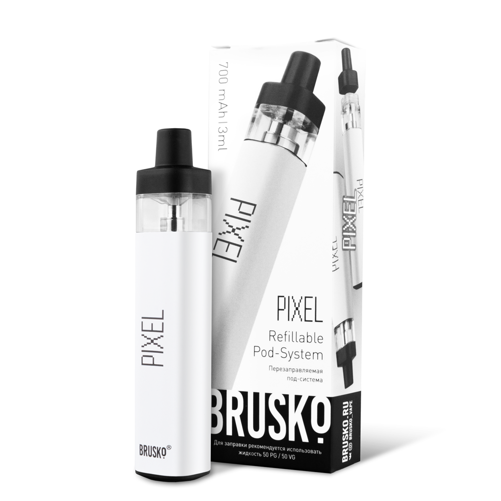 Перезаправляемая Под-Система Бруско Пиксель (Brusko Pixel) 700 mah, Белый - купить в Кисловодске